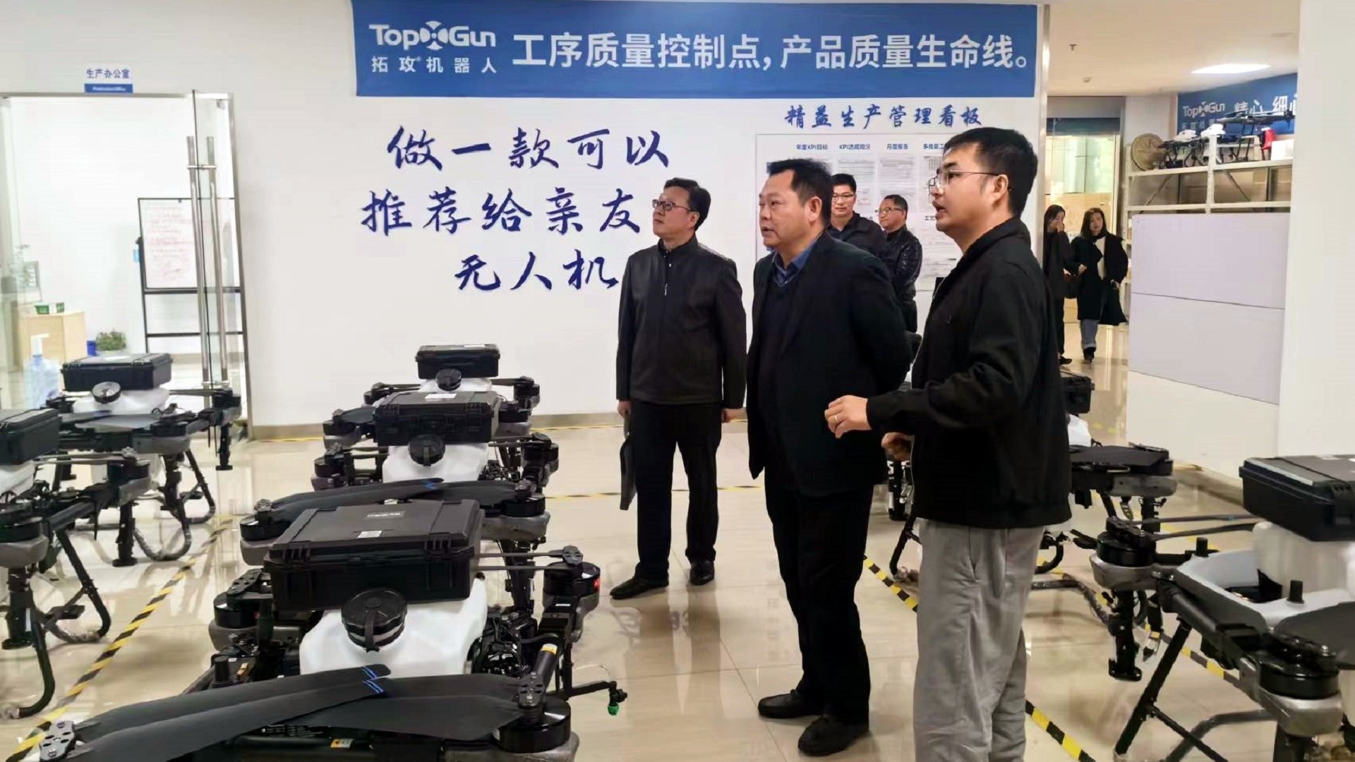 孙永荣一行观看了拓攻丰鹏400农用无人飞机的喷洒演示,参观了公司智能产品展厅、仿真实训中心及无人机生产组装车间等地。在随后的座谈会上,公司负责人尹亮亮等从公司核心能力、创始团队、监管平台、市场情况、教育培训应用服务相关业务等方面进行了介绍,详细阐述了农业应用场景案例和物流场景。表达了产教融合的意愿,并积极参与到学院无人机等专业建设、实训基地建设等项目建设过程中,合作培养无人机应用领域高素质技能人才,共同助力区域经济及产业发展。
