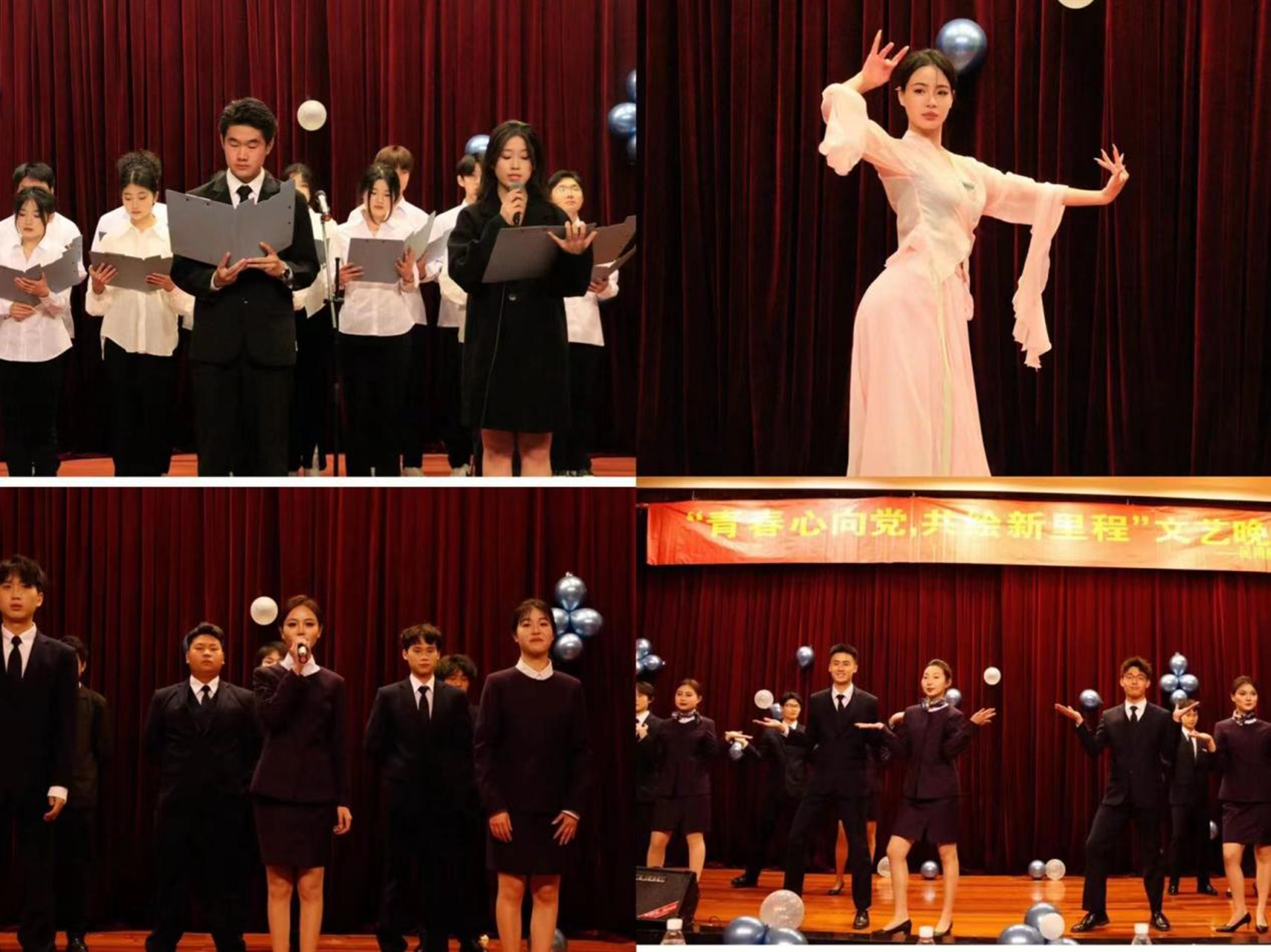 为了更好的促进校园文化建设,推进校园文化活动的发展,让学生在学习之余更好的施展自己的才能,发挥自己的个性,培养自身的创新意识与实践能力。3月30日晚,民用航空系举办“青春心向党,共绘新里程”文艺晚会,院团委俞靖童老师,民用航空系党支部书记、副主任虞骏卿。团总支书记陈瑶以及民用航空系的辅导们参加了此次晚会。
