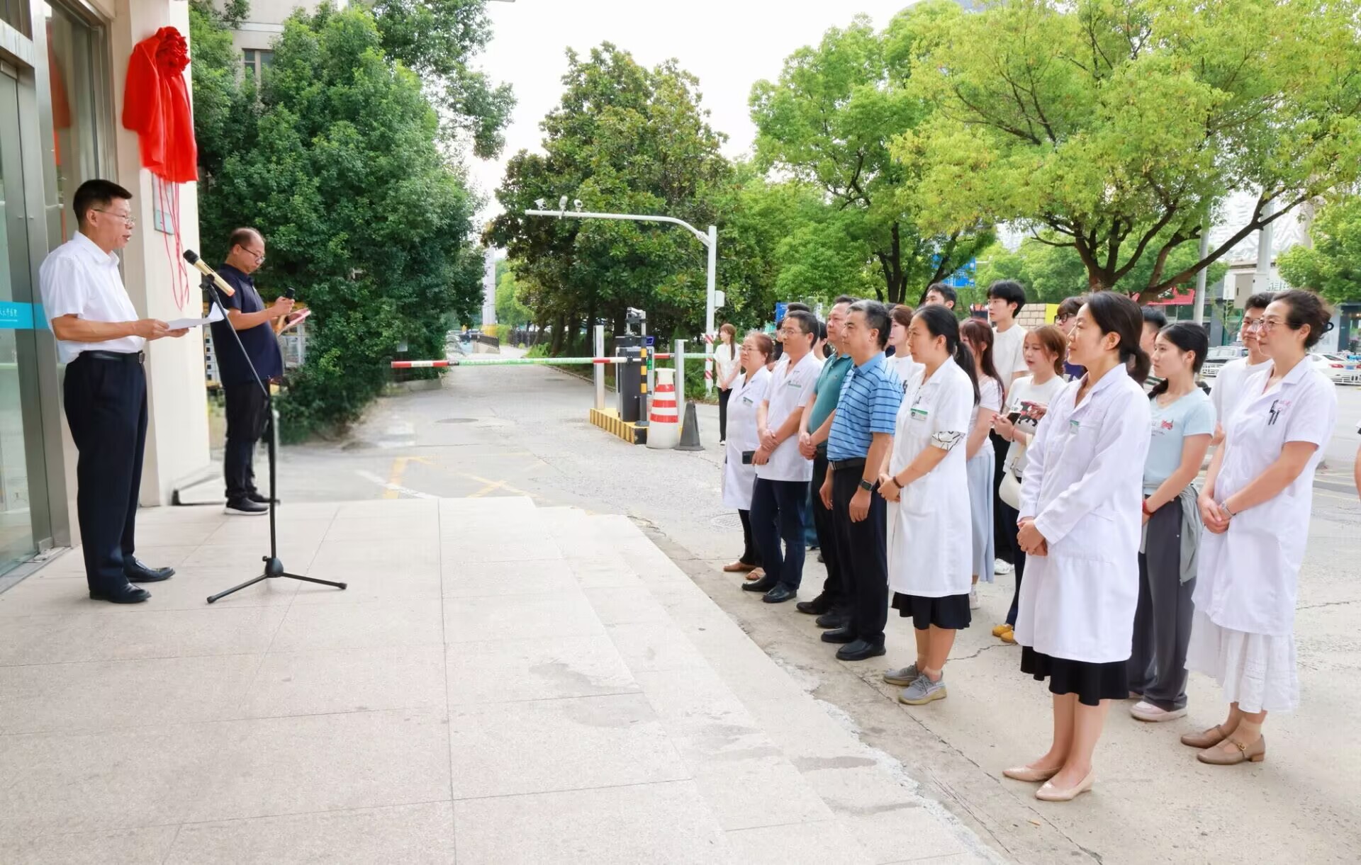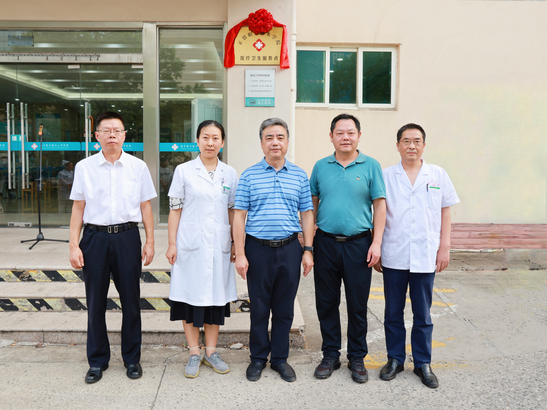 在与会人员的共同见证下,黄炳辉、孙永荣、陆晖、高斌、夏明川共同为正德服务点揭牌,随着红绸缓缓落下,正德学院医疗卫生服务点正式启用,标志着南航校医院优质医疗资源全面向偷拍做爱 师生开放。