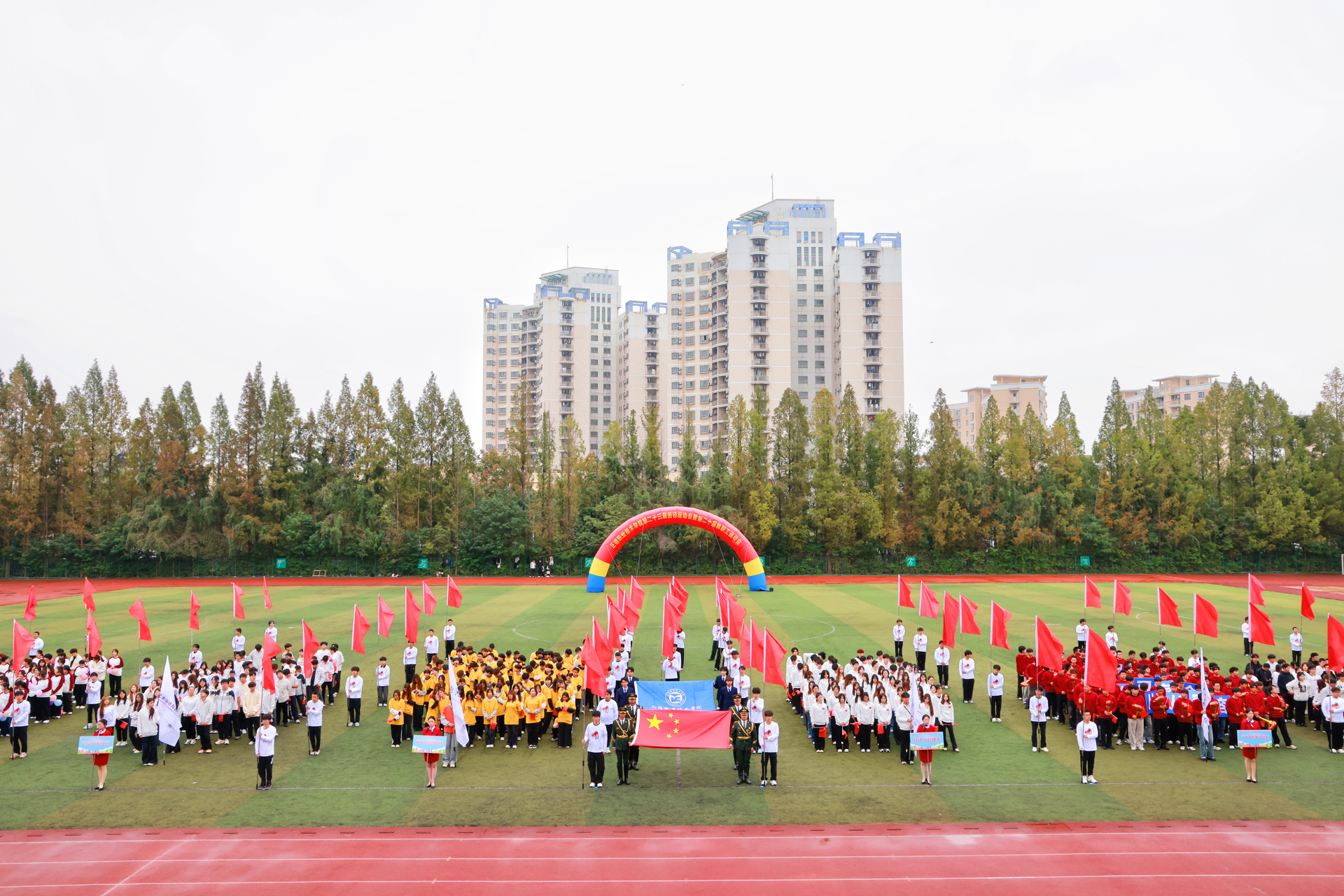 随着激昂的《运动员进行曲》响起,由国旗、校旗与红旗构成的前导队以及各系学生组成的方队,依序步入会场。各系代表方阵士气高昂、口号铿锵,彰显出正德学子积极进取、团结奋进的青春风貌。