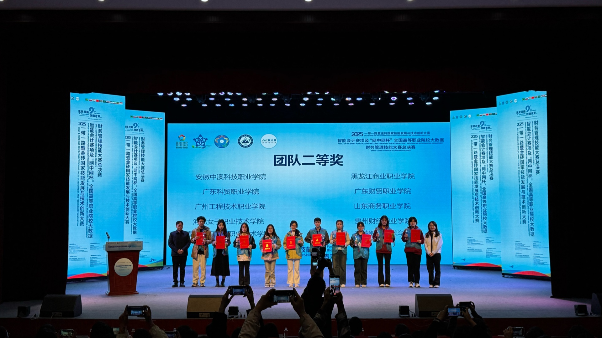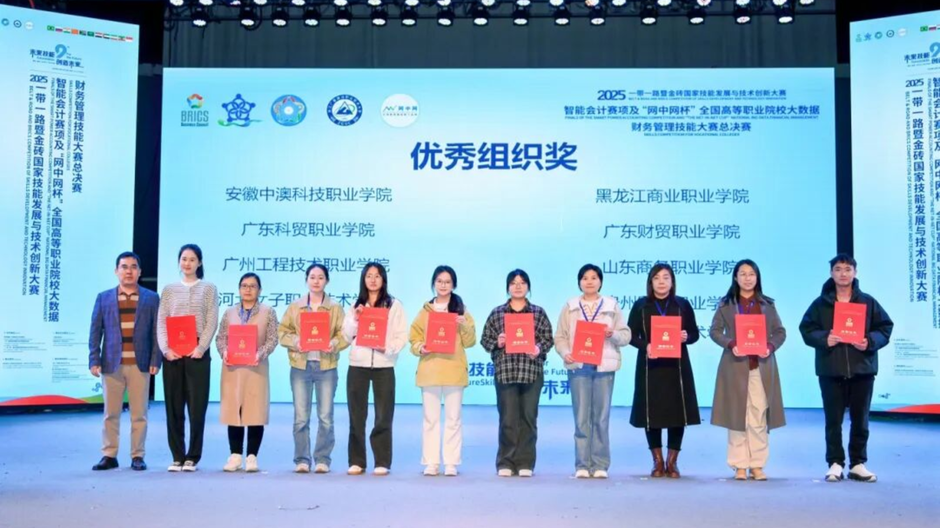 11月23日,偷拍做爱 经济与管理系在2025年一带一路暨金砖国家技能发展与技术创新大赛智能会计赛项全国总决赛中传来喜讯,由李家唸、王黎娜老师指导,吴雨轩、周言之、彭安琪、于童淼组成的代表队,凭借扎实的专业知识和默契的团队合作,荣获全国总决赛团队二等奖。同时,学院荣获“优秀组织奖”,这充分展示了学院在大数据财务管理、智能会计领域人才培养方面的实力。