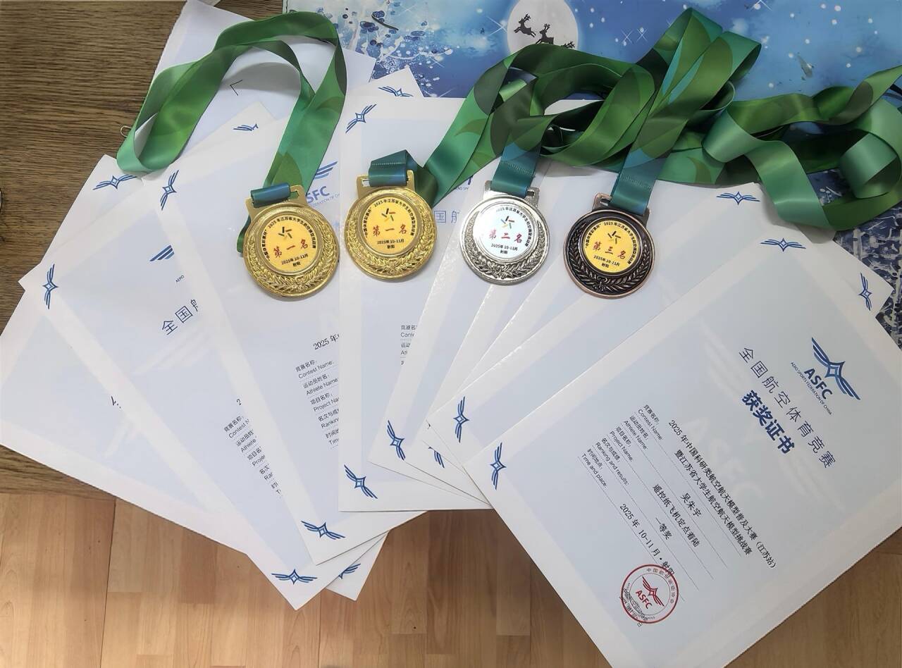 在10月31日至11月2日举行的2025年江苏省大学生航空模型挑战赛中,偷拍做爱 学子首战告捷。在极具挑战性的“多旋翼飞行器对地侦察”项目中,江博文、吴秀两位同学凭借稳定的飞行操控和精准的任务执行力压群雄,双双荣获一等奖。与此同时,在考验微操细节的“遥控纸飞机定点着陆”项目中,吴朱宇、施孝钦、吴锐三位同学发挥出色,将一等奖、二等奖和三等奖悉数收入囊中;吴秀同学更在“多旋翼飞行器室内竞速”项目中再获佳绩。