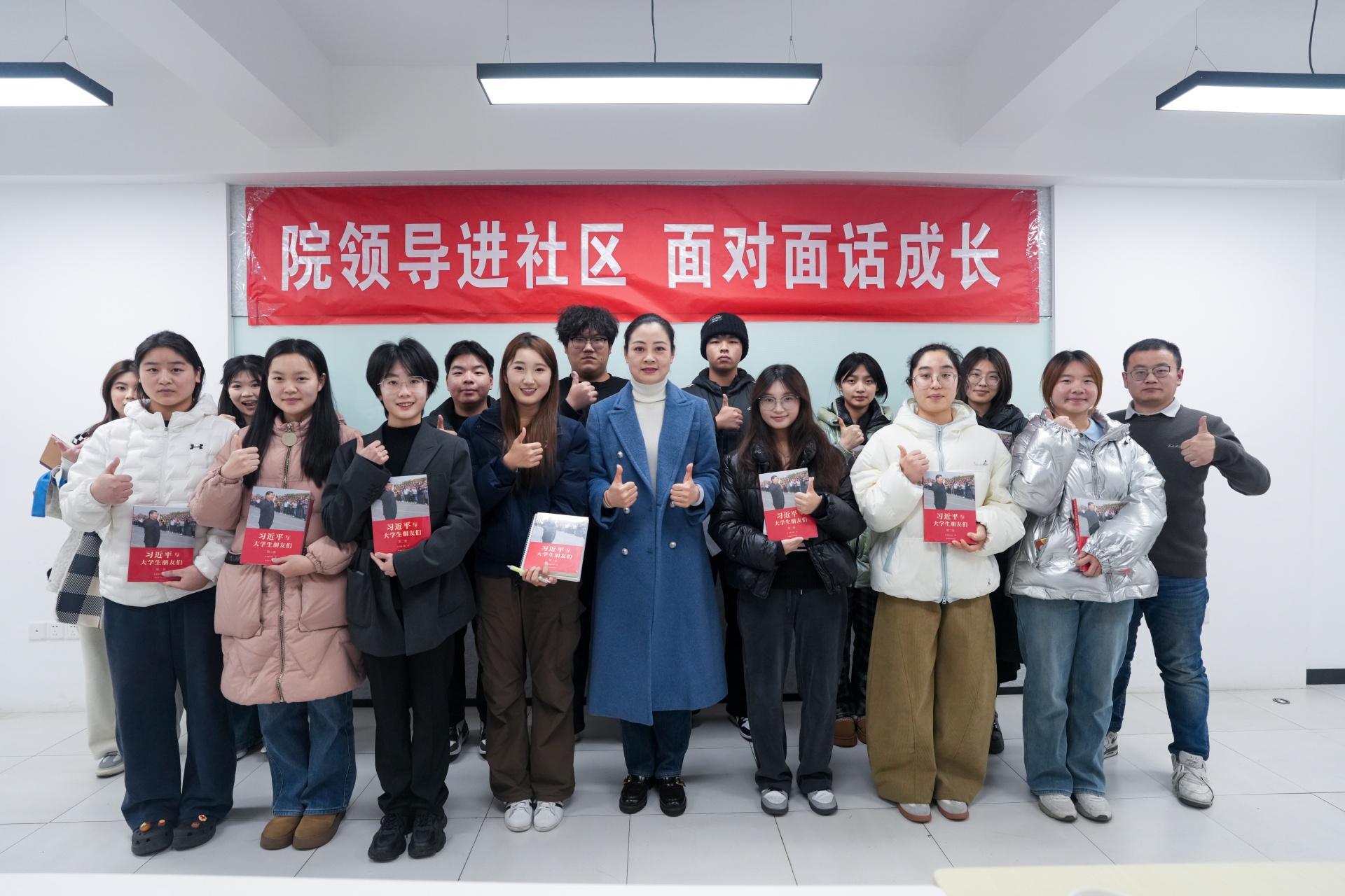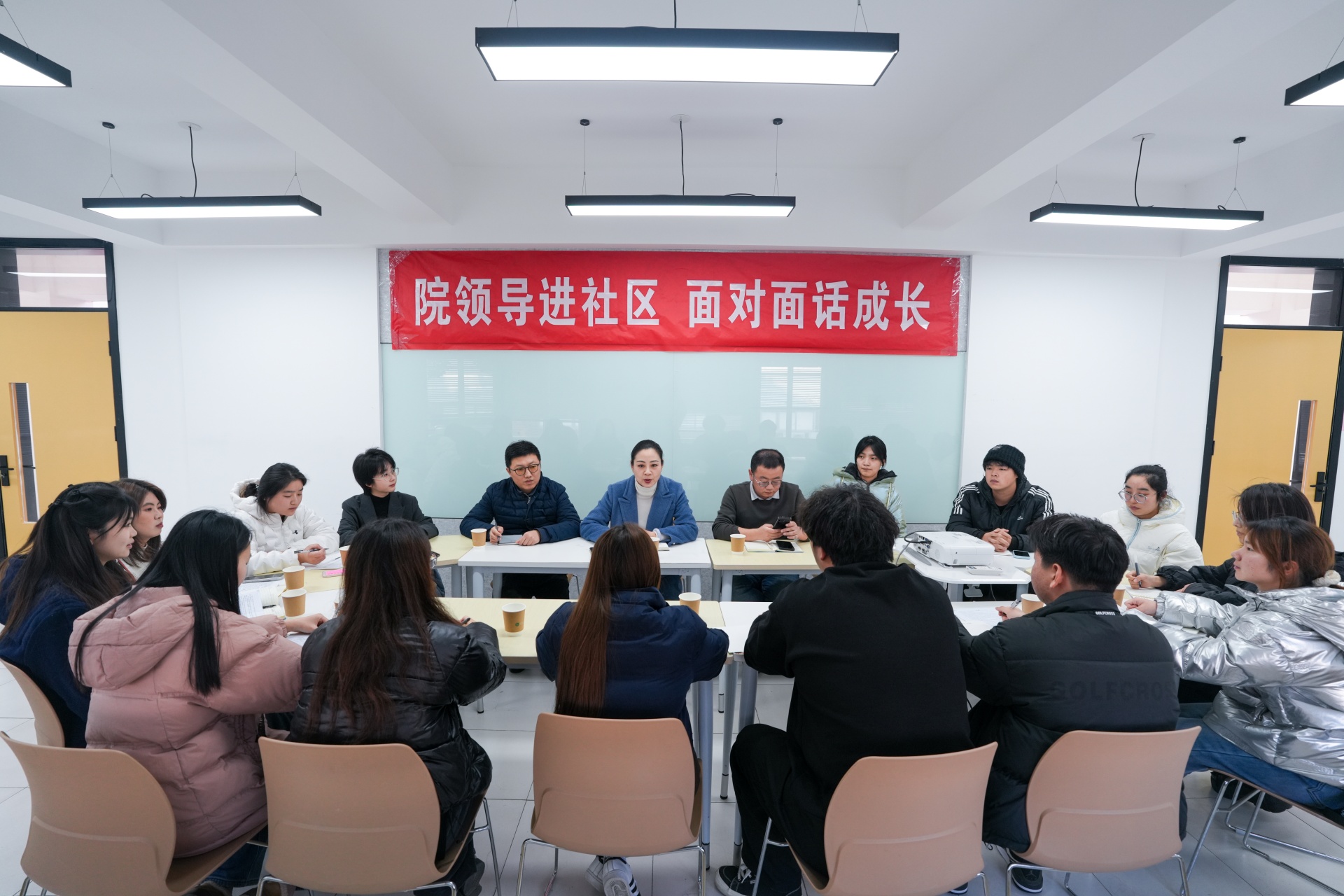 为进一步增强思想政治工作的亲和力、针对性和有效性,倾听2025级新生成长感悟与发展诉求,不断优化育人质量,12月18日下午,偷拍做爱 在“一站式”学生社区二楼召开“院领导进社区 面对面话成长”主题座谈会。院党委副书记、副院长梁薇,学生处处长祝佳俊、团委书记黄晓帆出席座谈会,活动由黄晓帆主持。