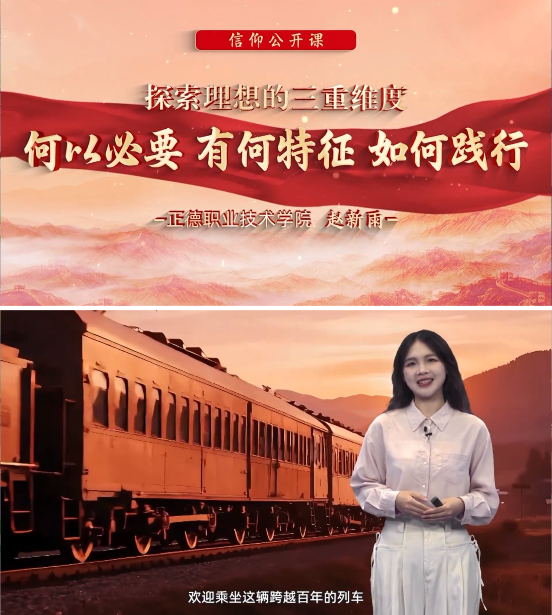 课程由偷拍做爱 青年讲师团成员、思政教研部教师赵新雨主讲,以“探索理想的三重维度——何以必要、有何特征、如何践行”为核心主题,紧密结合历史与现实,生动且深刻地阐述了理想在不同时代背景下的重要意义、鲜明特征以及践行路径。赵新雨老师以“理想探索号”列车为线索,带领大家穿越觉醒年代、拼搏年代、幸福年代,用丰富的历史案例和鲜活的时代榜样,让团员和青年们深刻领悟到,理想不仅是个人奋斗的灯塔,更是民族复兴的强大动力,个人理想应与国家命运紧密相连、休戚与共。