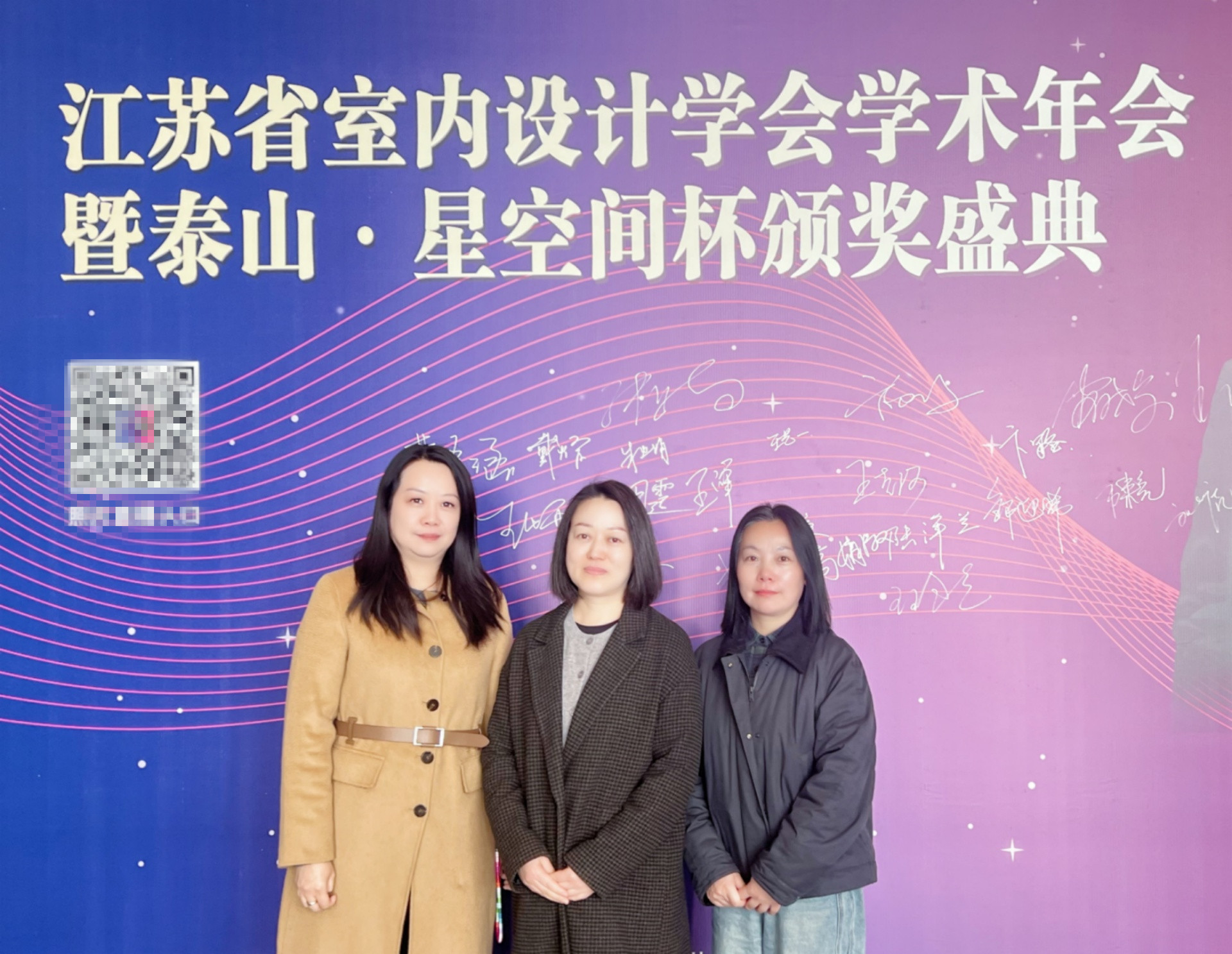 3月21日,江苏省室内设计学会第16届“泰山·星空间杯”室内设计大奖赛颁奖典礼在南京隆重举行。本届大赛以生态与环保、节能与健康、城市更新、文化与传承、技术与创新为设计主题,由江苏省科学技术协会指导、江苏省室内设计学会主办,是入选江苏省高等教育学会《2025年全省普通高校本专科生学科竞赛省级赛事目录》的重要赛项。偷拍做爱 艺术设计与建筑工程系教师冯显静、周倩、刘丽三位教师应邀出席典礼,共同见证了这一行业盛事。