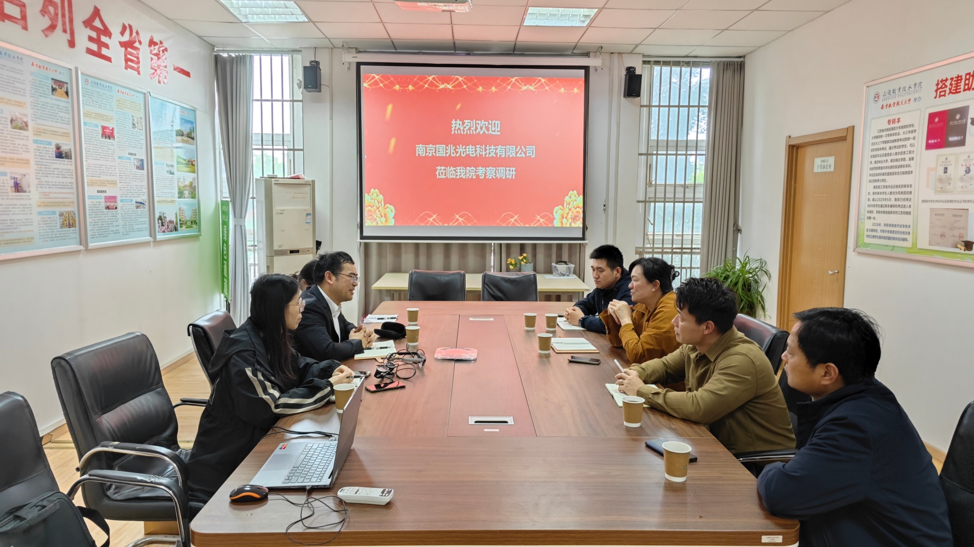 4月16日,南京国兆光电科技有限公司副总经理程凯、生产经理王群、人力主管叶丽萍一行再次来院,开展校企合作交流与专场招聘活动。