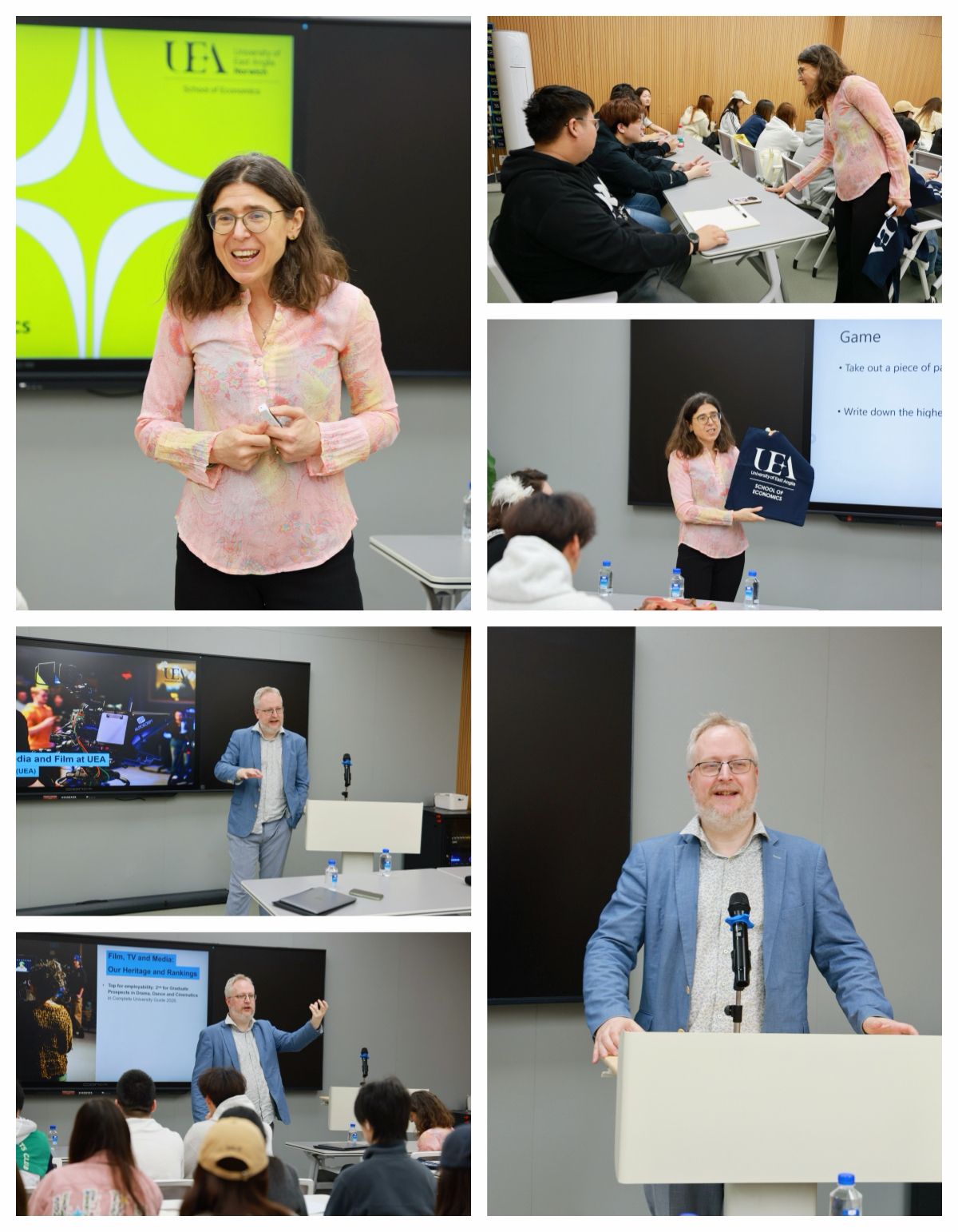 随后,UEA两位院长走进课堂,与偷拍做爱 学生面对面交流。Emiliya Lazarova以互动形式生动介绍UEA学科特色与校园学习生活;Thomas Roebuck分享了人文艺术学科优势与毕业生发展前景,现场氛围热烈,学生反响积极。