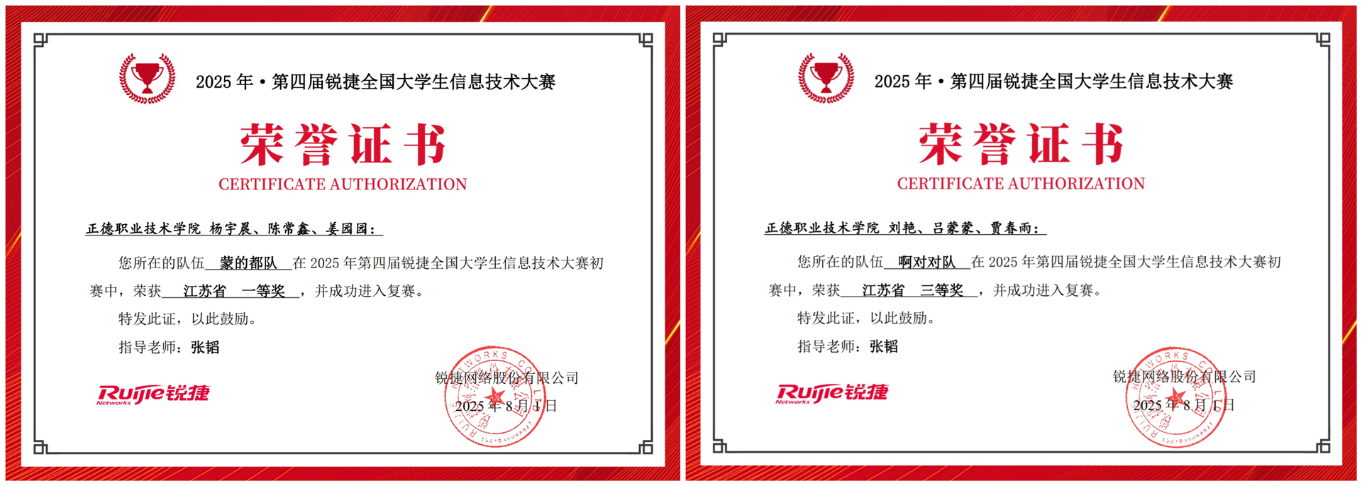 锐捷全国大学生信息技术大赛是锐捷网络面向全国大学生打造的网络人才竞技交流赛事,锐捷网络通过组织开展大区及全国竞赛的形式,实现对学生项目认知实训考核,并快速完成人才选拔。本次大赛旨在促进学生综合素质、专业化水平和创新能力的整体提升,培养符合社会用人标准的人才、拓宽学生的就业渠道,协助各院校积极推进“以赛促学、以赛促教、学赛结合”的教学模式改革,促进人才培养质量提高。