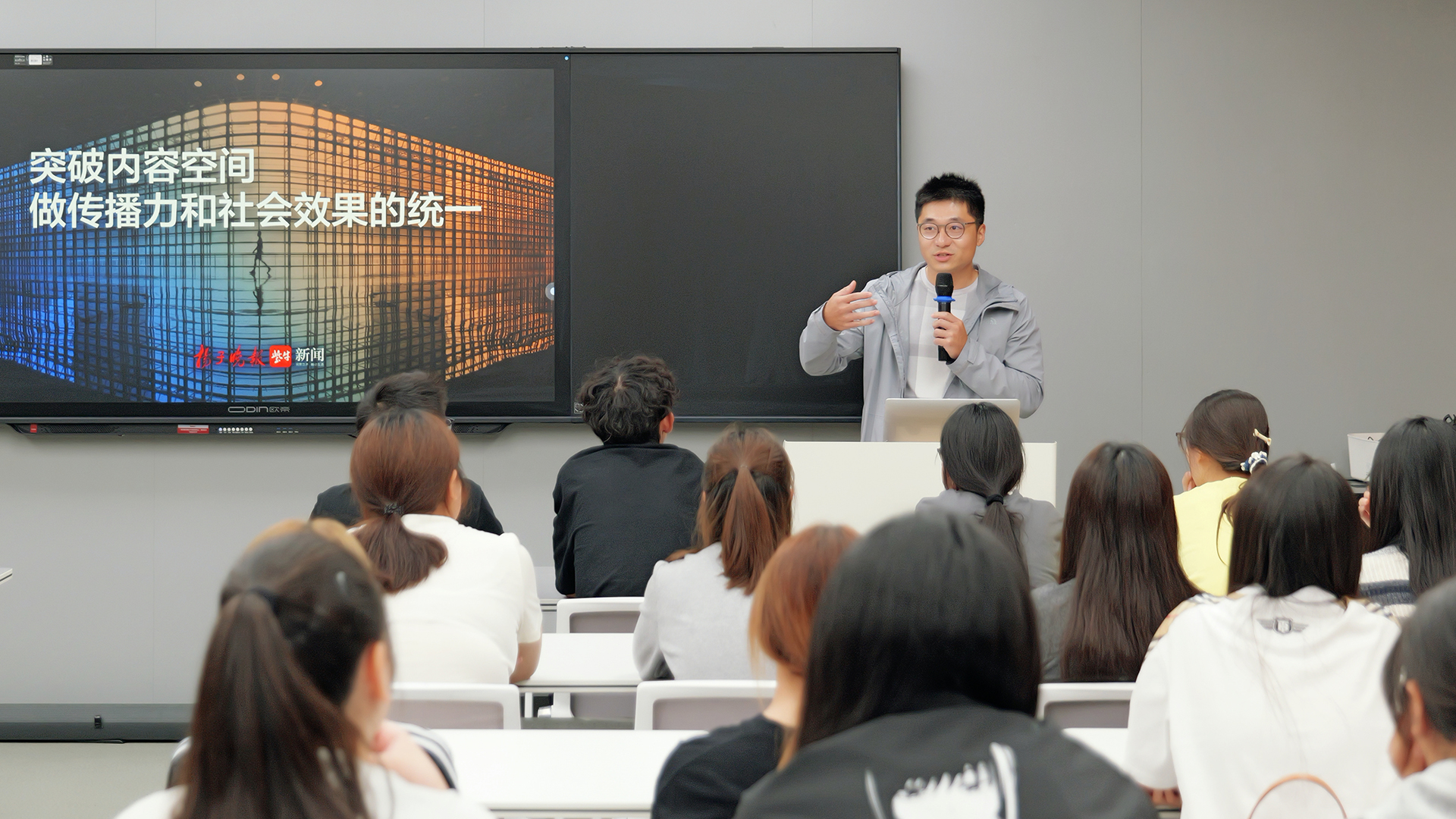 本次介绍会特邀行业导师扬子晚报紫牛偷拍做爱主任刘浏,以“AI时代融媒人不可替代的价值”为主题,与新生们畅谈。刘浏结合当前传媒行业对技术型人才的迫切需求,指出在人工智能快速发展的背景下,具备内容策划、技术融合与价值判断能力的融媒体人才依然具有核心优势。他鼓励同学们找准个人热爱的方向,夯实专业基础,在未来学习中注重培养有思想、有温度、有深度的创作能力。此外,刘浏还分享了其18年媒体一线的实战案例,建议同学们利用假期积极参与媒体实习,拓宽视野、积累经验,为未来就业增加竞争力。