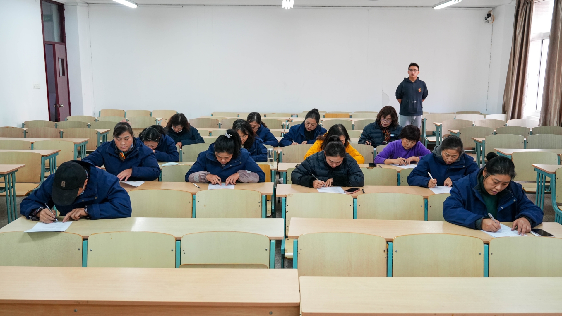 通过理论知识测试、现场认人两个环节,宿管员们充分展示了专业素养、应急应变能力。对于楼栋值班员的考核同样严格且具有挑战性。学生处工作人员随机抽取学生进入楼栋,以此测试值班员能否及时发现异常情况,并迅速、有效地进行拦截。这一环节模拟了实际工作中的突发场景,全面考查了值班员的警惕性和应对突发事件的能力。值班员们时刻保持高度警觉,认真履行职责,彰显了良好的职业素养与责任担当。