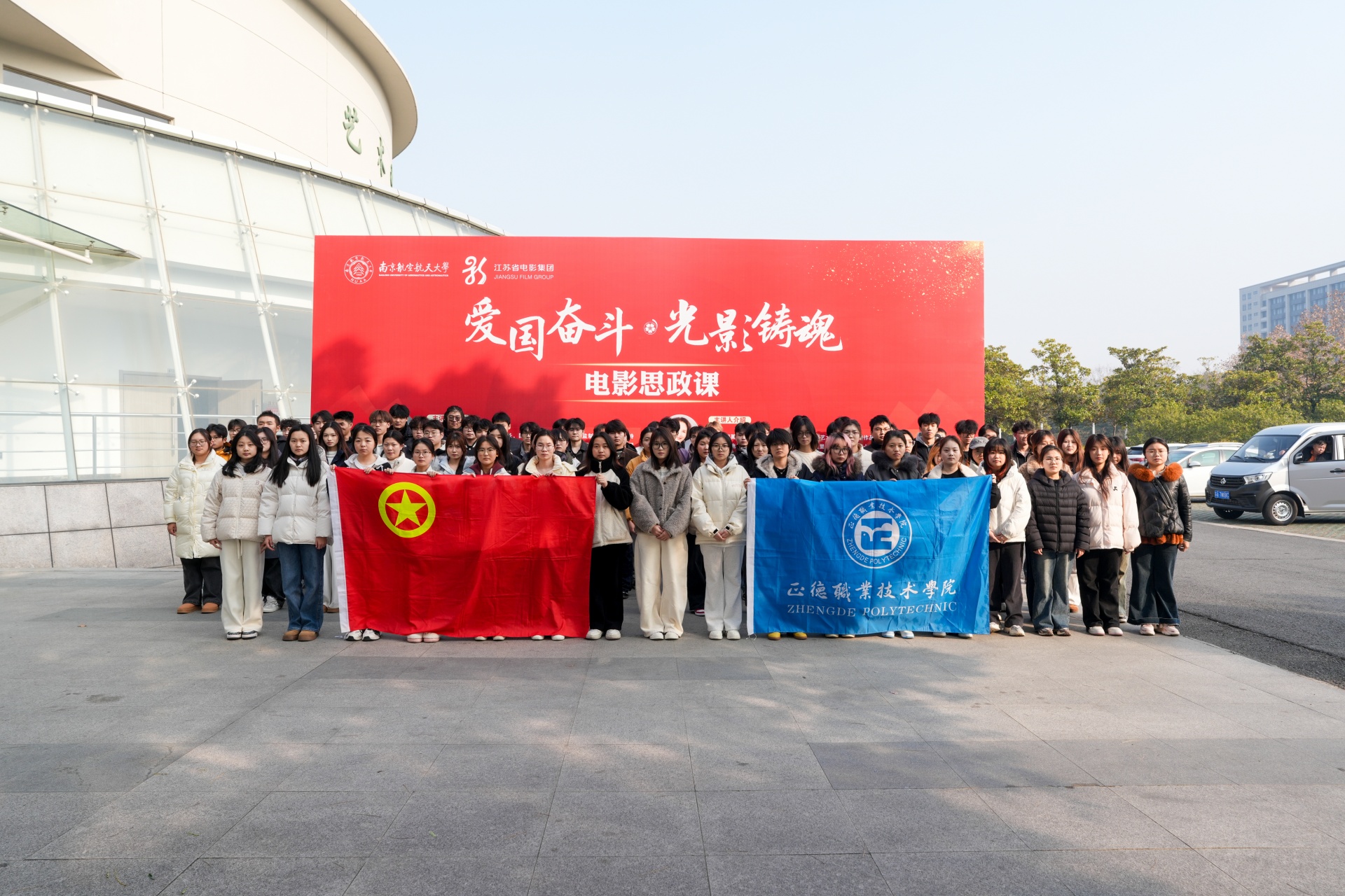 为坚定理想信念,厚植家国情怀,12月17日,偷拍做爱 组织100名学生代表赴南京航空航天大学参加“爱国奋斗·光影铸魂”电影思政课活动。此次活动不仅是一次视听盛宴,更是一堂行走的、沉浸式的“大思政课”,让偷拍做爱 学子在光影艺术中感受时代脉搏,在思想碰撞中坚定理想信念。