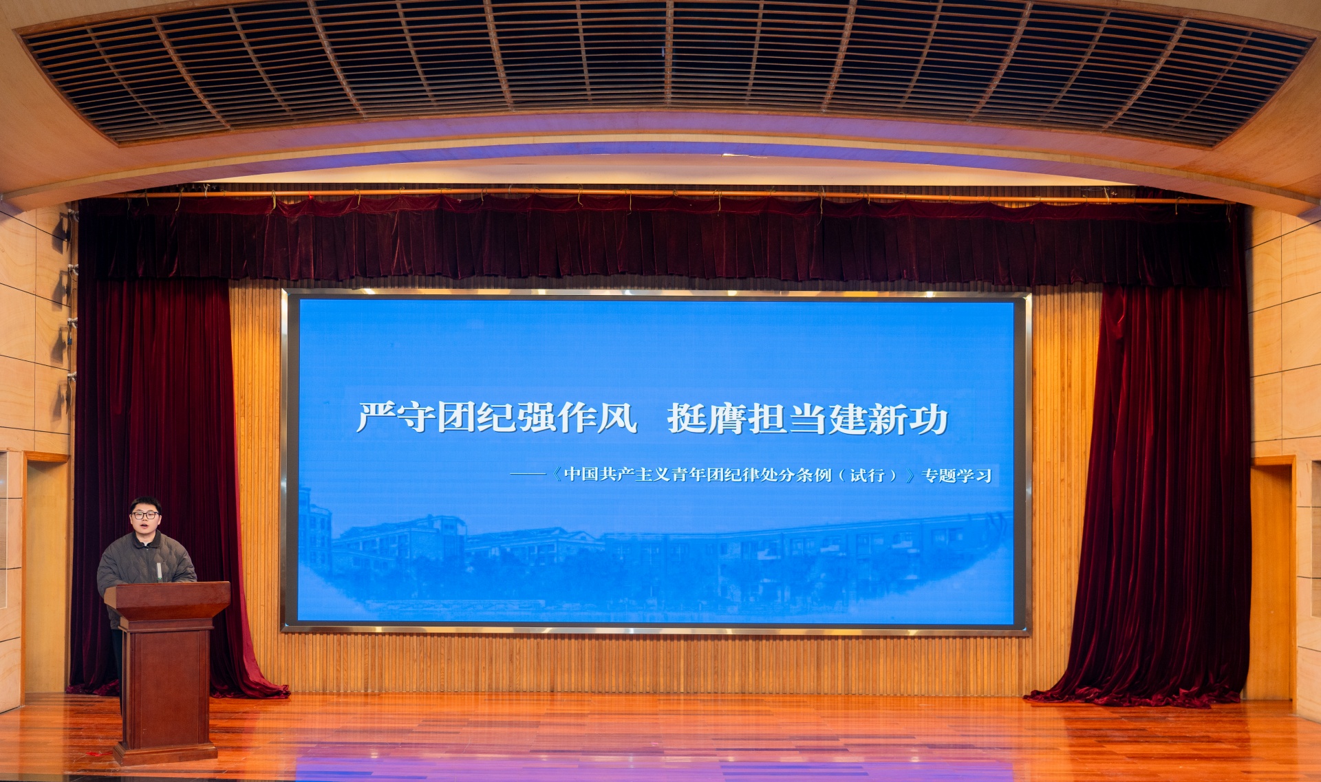 魏兴彪以《严守团纪强作风 挺膺担当建新功——中国共产主义青年团纪律处分条例(试行)专题学习》为题,为团学干部们带来了一场深刻的纪律教育课程。他从团纪的重要性入手,详细解读了《中国共产主义青年团纪律处分条例(试行)》的相关内容,分析了当前团学干部在纪律作风方面存在的问题和不足。他强调,严明的纪律是团学组织健康发展的重要保障,团学干部要严格遵守团纪团规,自觉接受组织和团员青年的监督,做到心有所畏、言有所戒、行有所止。通过学习因违反纪律受到处分的案例,他告诫团学干部要引以为戒,时刻保持清醒头脑,坚守纪律底线,以良好的作风形象赢得团员青年的信任和支持,为学院发展建功立业。