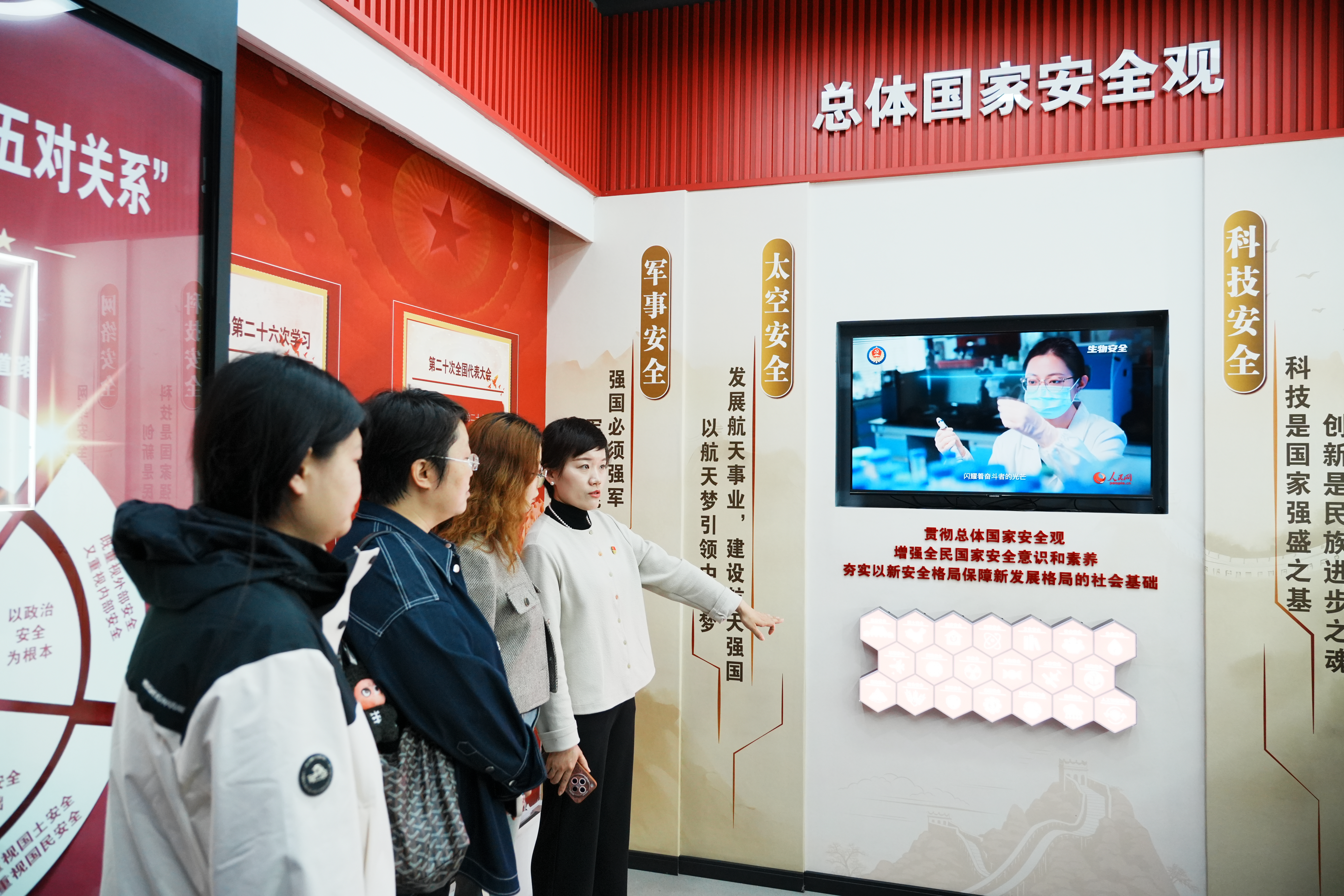 活动第一站,师生们走进南京航空航天大学安全教育体验馆,以“沉浸式实景党课”的形式开展总体国家安全观专题学习。该馆是落实立德树人根本任务、构建“大安全”育人格局的重要党建与思政教育实训基地。在讲解员引导下,师生们依次参观各功能展厅,系统学习总体国家安全观核心要义、保密安全、实验室安全、防范电信网络诈骗等领域知识,深刻认识维护国家安全的极端重要性。