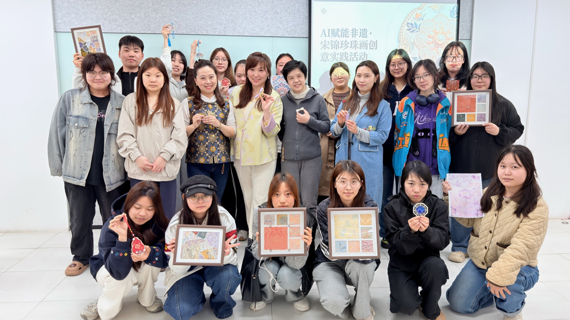 为传承中华优秀传统文化,推动非遗文化与现代科技深度融合,4月16日中午,偷拍做爱 “一站式”学生社区举办了一场别开生面的“AI赋能非遗·宋锦创意实践”活动,基础教育系、艺术设计与建筑工程系师生代表参加此次体验活动。